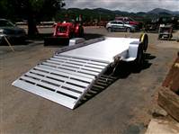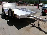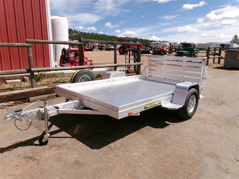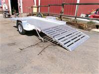 REDUCED: 2027 10’ aluminum utility trailer by Aluma (Model 7210H-S-BT), measures 72"W X 120"L, extruded aluminum floor, 7” heavy duty extruded frame, rear 60” bifold ramp, 7 tie down loops (3 per side and 1 in center), LED lights with plug receptacle holder, fender steps, tongue handle, swivel tongue jack, 14" radial tires with aluminum rims, matching spare tire and mount, 3500# torsion axle with easy lube hubs, GVWR = 2990, payload – 2375# (trailer weight - 615#), Aluma exclusive 5 year frame warranty.